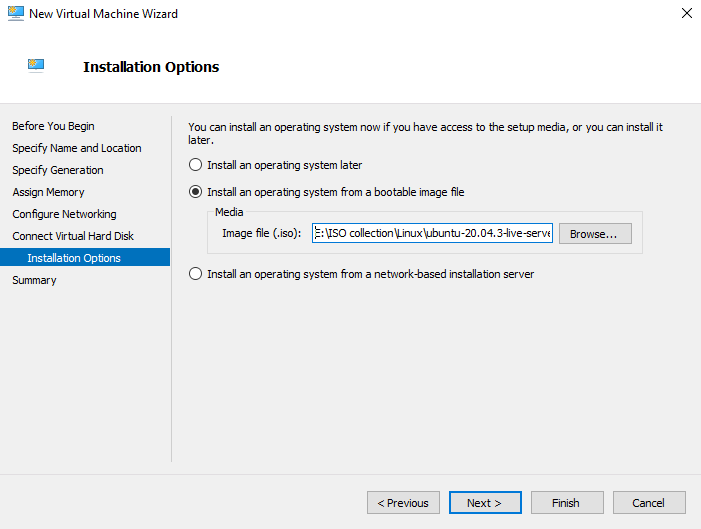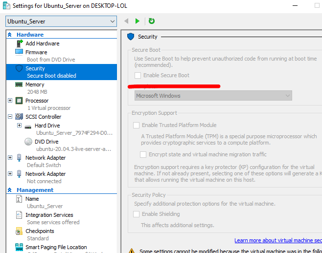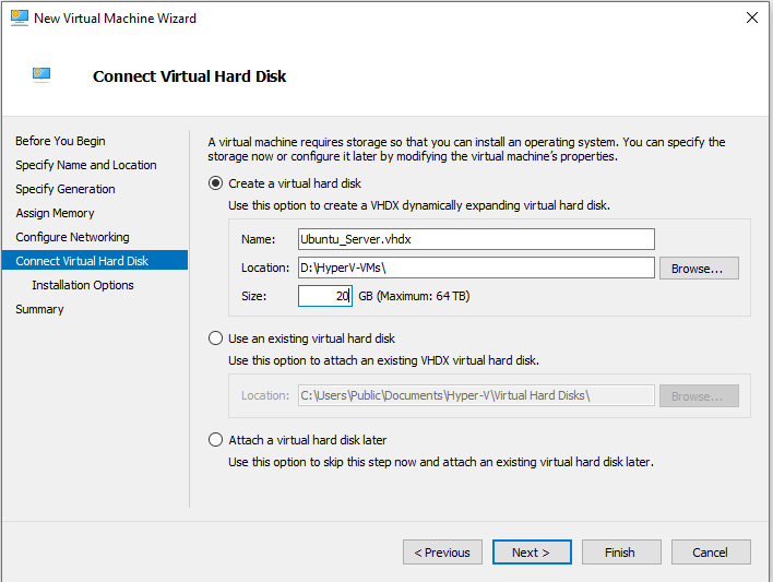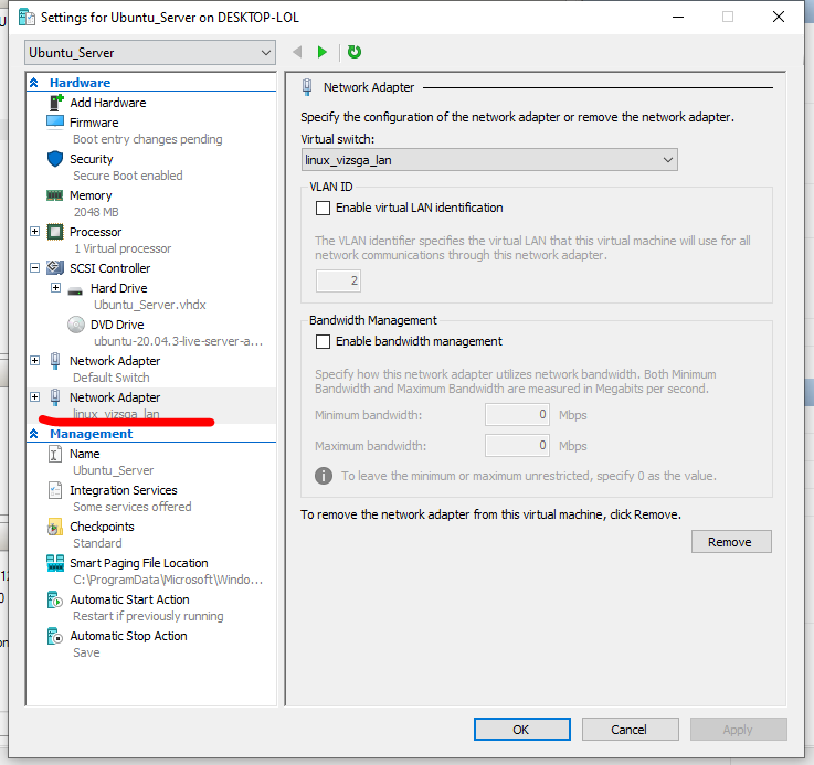 Készítsünk egy virtuális gépet tetszőleges névvel. Ha a gépünk támogatja, legyen 2. generációs. 2048 MB memóriával lássuk el. A virtuális merevlemezt a megfelelő helyre helyezzük el.
