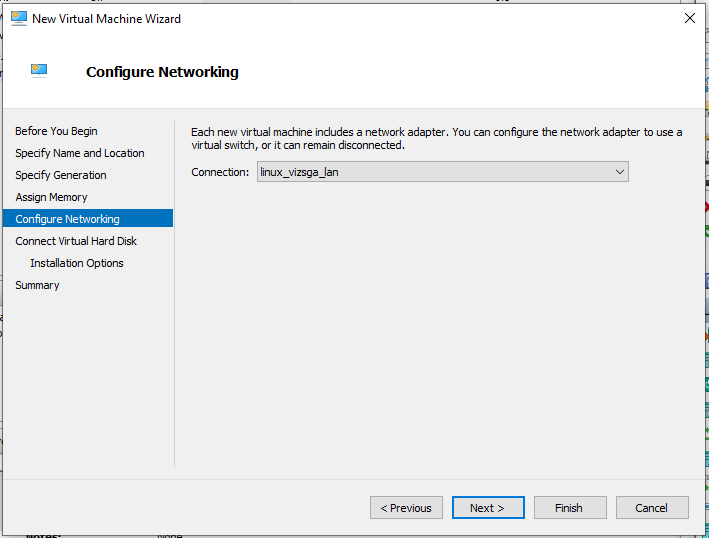A virtuális gép létrehozása szinte teljesen megegyezik az szerver telepítésével, annyi különbséggel, hogy csak a privát hálózati adaptert csatlakoztatjuk.