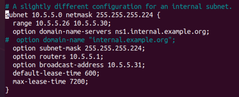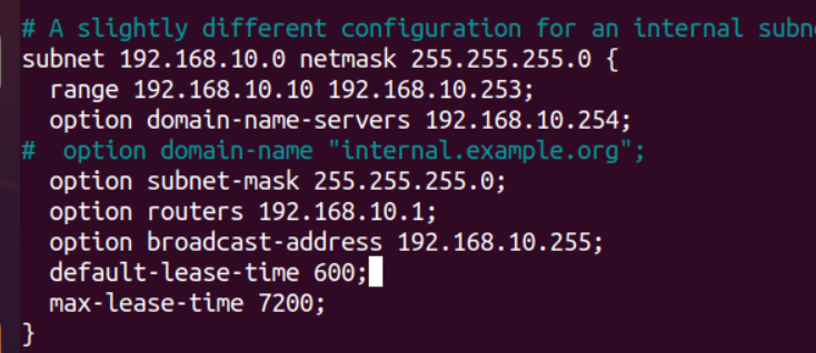 max-lease-time: a maximális bérleti idő, avagy ennek lejártával a kliensnek mindenképpen kell kapnia egy új IP címet