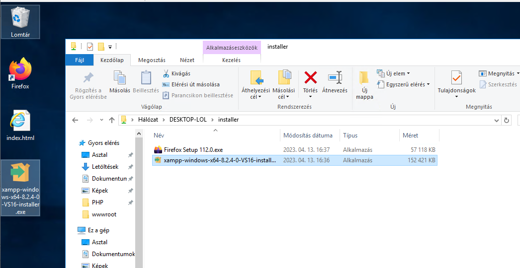 Indítsuk el a virtuális gépet! A Fájlkezelő elérési út mezőjébe válasszuk ki a korábban elmentett elérési utat!