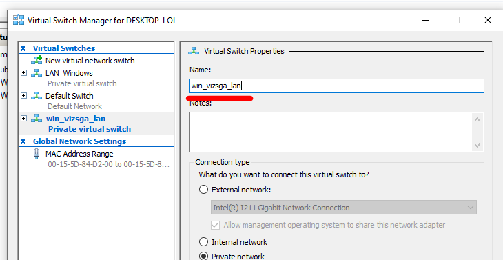 Hozzunk létre egy új, privátjellegű hálózatot.