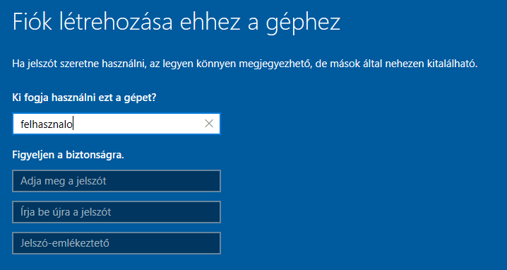 Adjunk meg egy felhasználónevet(jelszó nem kötelező, HA a feladat nem kéri).