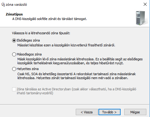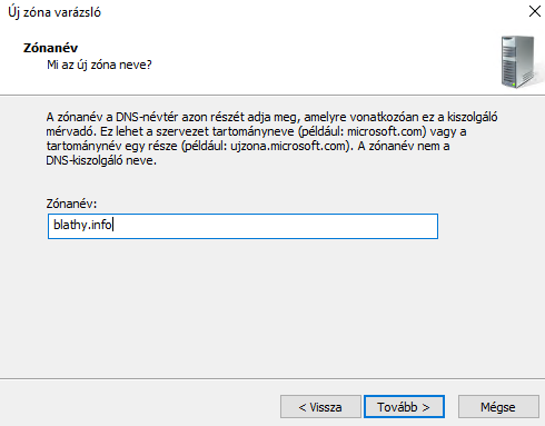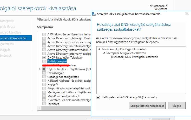 Névfeloldás működőképességéhez elengedhetetlen a DNS szerver. Elsősorban adjunk hozzá új szerepkört.