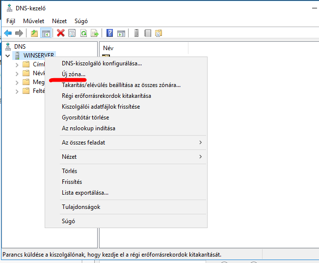 A szerveren belül új zóna létrehozása szükséges.