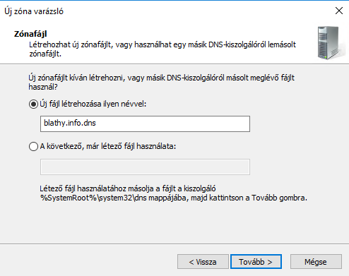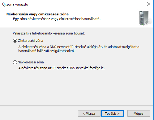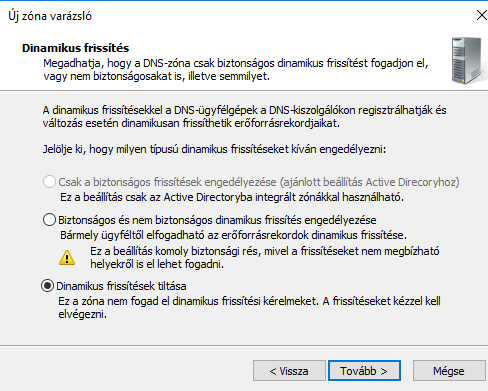A telepítés folyamata megegyezik a DHCP kiszolgáló telepítésével.