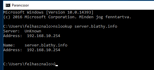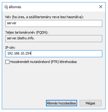 A név a feladat szerint megadott név legyen. Az IP cím pedig a szerver címe (192.168.10.254 jelen esetben)