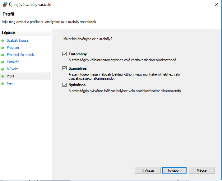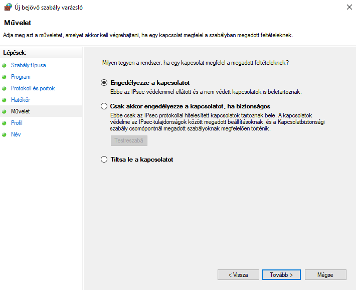 Itt mindhármat engedélyezzük, HA a feladat nem kér mást. Végül adjunk meg neki egy nevet, amiről megismerjük később.